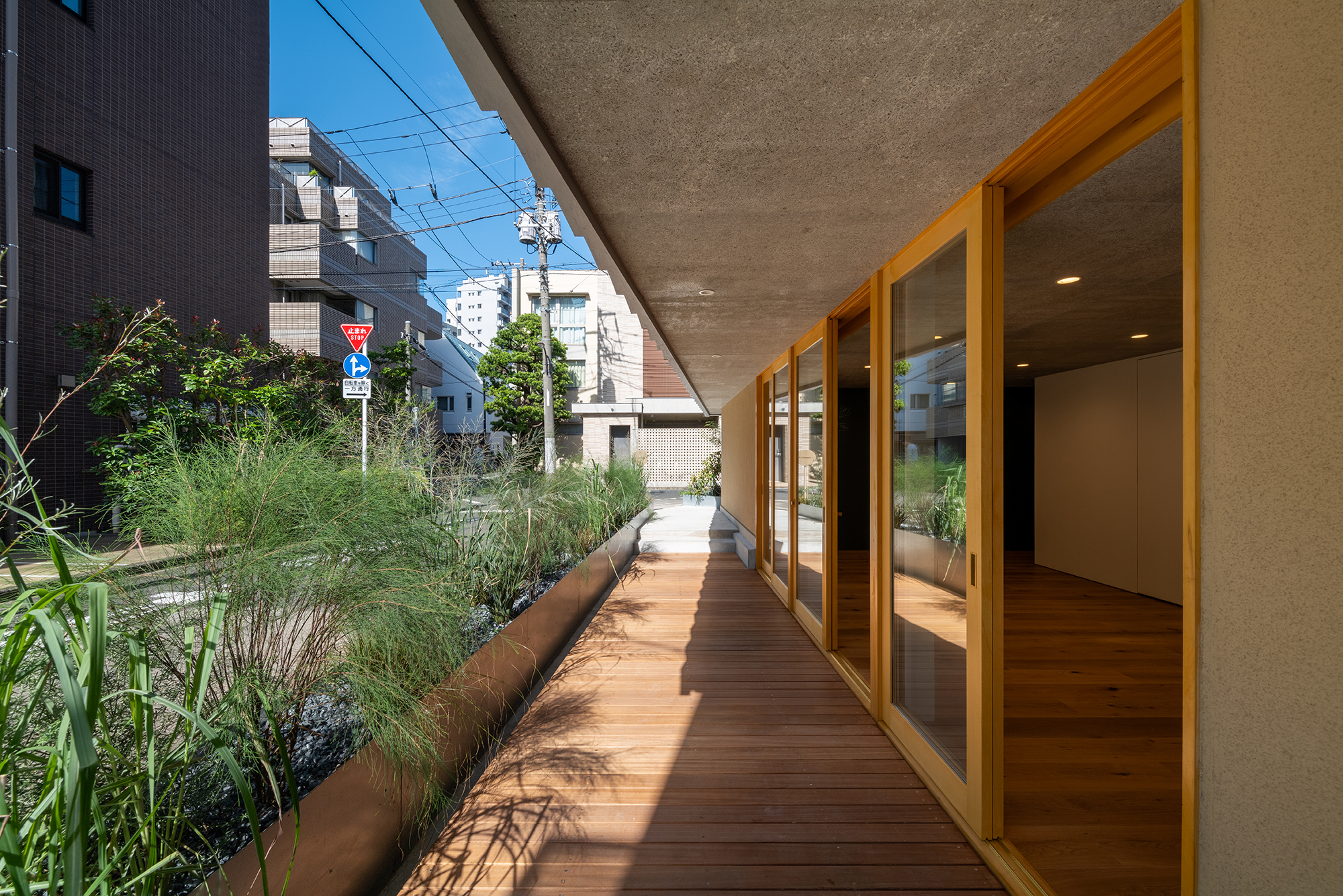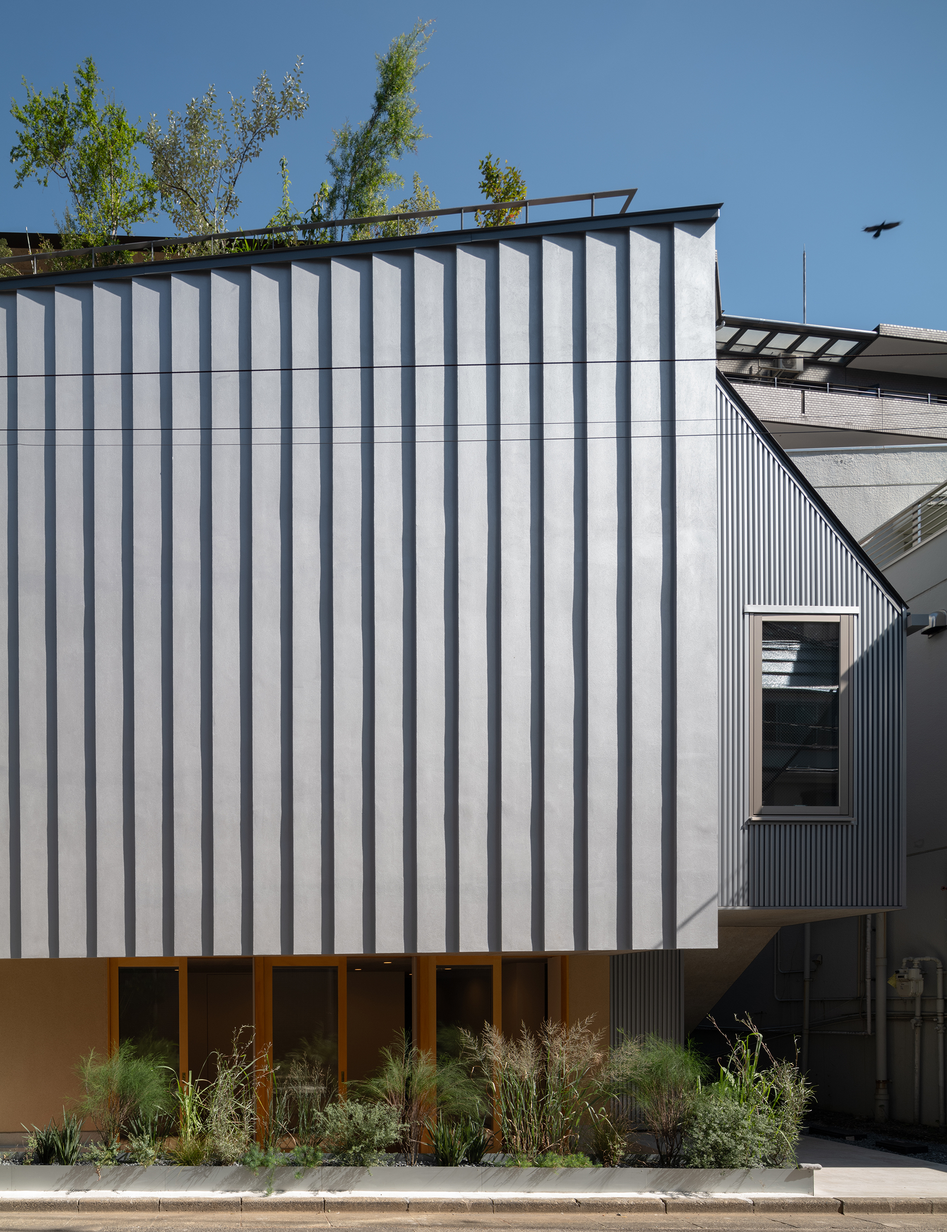 江戸の二大庭園「六義園」のほど近く、古くからの住宅地に建つバレエスタジオ兼住宅である。往時には多くの植木店でにぎわっていた。鳥の目で東京を俯瞰すれば、この界隈が都内でも有数の大緑地帯であることに気づかされる。翻って現在ではこのエリアでもミニ開発が進んでおり、とってつけたような緑化に本来の豊かな緑空間が取って代わられつつある。
